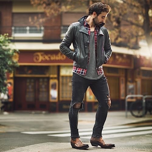 Specificaties: EkOkim Heren en dames enkellaarzen western cowboy laarzen lederen schoenen cowboy schoenen retro reliëf borduurwerk gesneden patronen