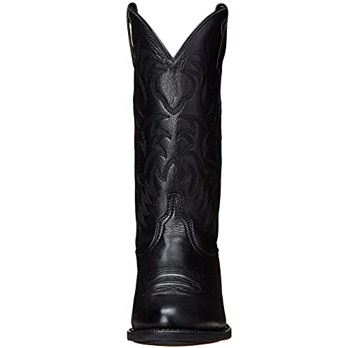 MYWA Mannen koeienhuid cowboy laarzen, PU geborduurd mid-boots, ronde teen lage dikke hak modieuze kalfsleer laarzen, retro mid-hak motorlaarzen