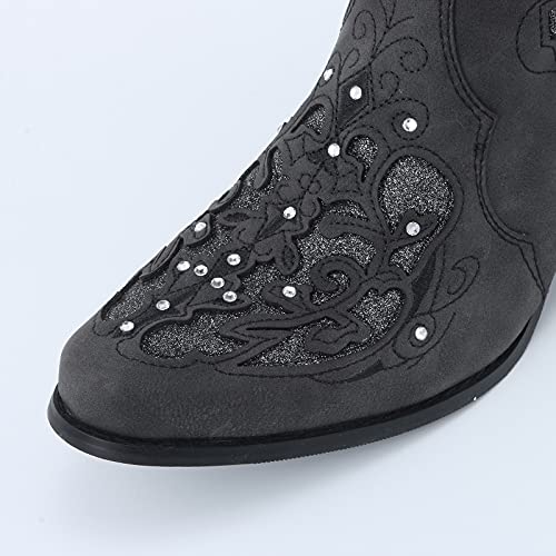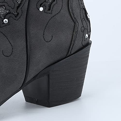 Voor Vrouwen Lage Westerse Strass Hak Laarzen Hoge Rodeo Knie Studded Geborduurde Chunky Laarzen Cowboy Vrouwen Laarzen Lange Laarzen voor Vrouwen over de Knie Maat 4