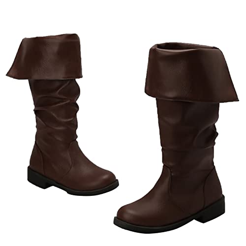 Specificaties: PAIDAXING Laarzen voor Vrouwen Flanging Zacht Lederen Mid Kuit Laarzen Casual Ronde Neus Geplooide Slip On Cowboy Laarzen Mode Effen Lage Hak Westerse Schoenen Laarzen