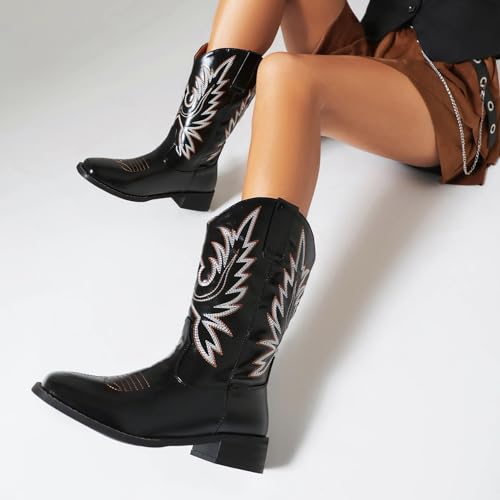 PAUVAODY Klassiek Cowboy Laarzen voor dames Vierkante Teen Wide Calf Cowgirl Cowboy Laarzen