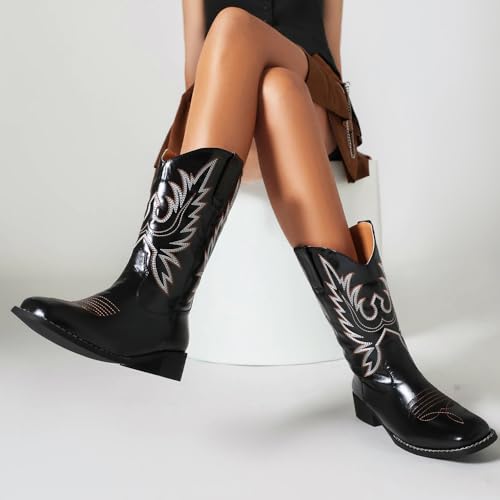 Specificaties: PAUVAODY Klassiek Cowboy Laarzen voor dames Vierkante Teen Wide Calf Cowgirl Cowboy Laarzen