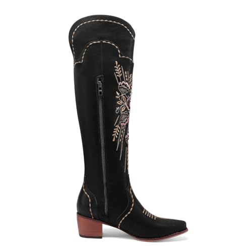 Specificaties: PAUVAODY Klassiek CowgirL Laarzen voor dames Chunky Heel Western Knee Hoge Laarzen Pull On Wide Calf Cowboy Laarzen