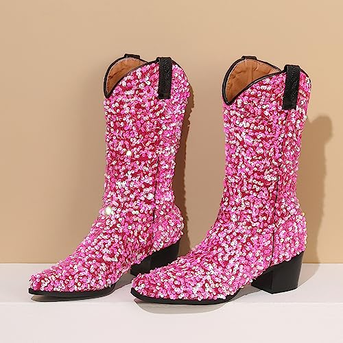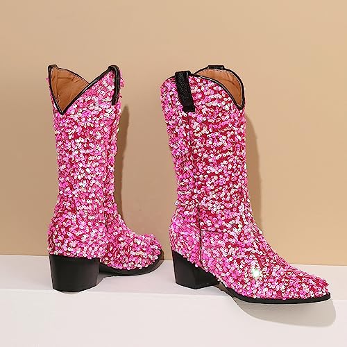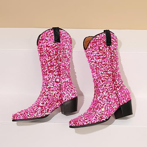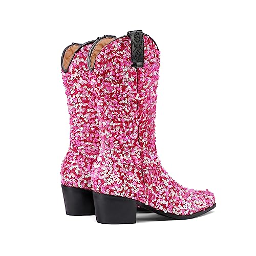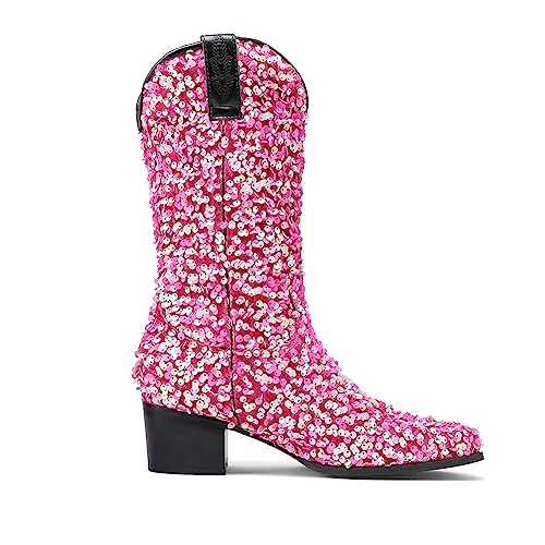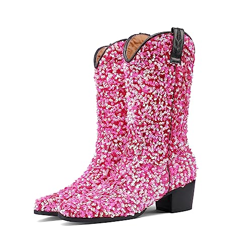 Specificaties: PAUVAODY Klassiek Sparkle Sequins Cowboy Laarzen voor dames CowgirL Laarzen Lage Hiel Western Laarzen