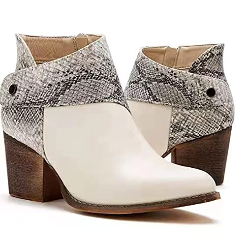 Tkukkwr Schoenen Cowboy Laarzen 2022 Herfst Europese En Amerikaanse Stijl Medium Hak Kleur Contrast Side Rits Enkellaarzen Cowboy Laarzen Voor Vrouwen