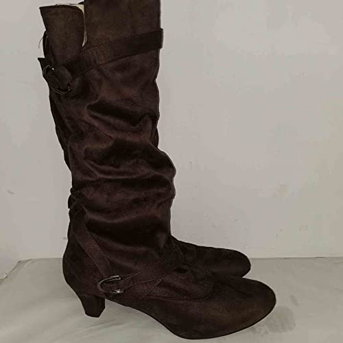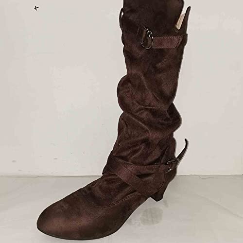 Tkukkwr Schoenen Cowboy Laarzen Vrouwen Buitenlandse Handel Herfst En Winter Nieuwe Mid Hak Slip On Mode Mid Laarzen Cowboy Laarzen voor Vrouwen