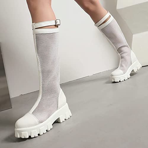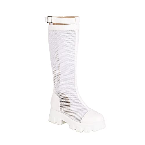Specificaties: Tkukkwr Schoenen Cowboylaarzen voor Vrouwen Vrouwen Mid Kuit Laarzen Lente En Zomer Mode Eenvoudige Mesh Laarzen Effen Kleur Dikke Zolen Comfortabele Vierkante Hak Cowboy Laarzen