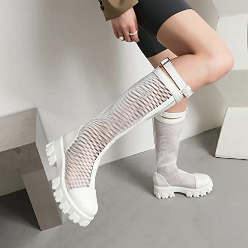 Tkukkwr Schoenen Cowboylaarzen voor Vrouwen Vrouwen Mid Kuit Laarzen Lente En Zomer Mode Eenvoudige Mesh Laarzen Effen Kleur Dikke Zolen Comfortabele Vierkante Hak Cowboy Laarzen