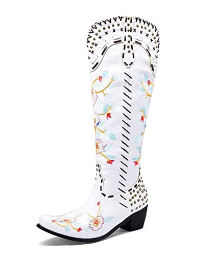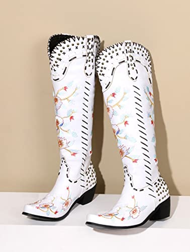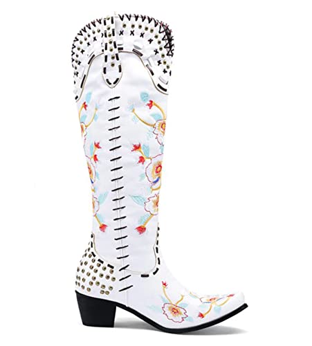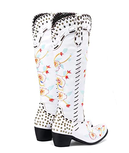 Nieuwe geborduurde klinknagel westerse cowboy dames laarzen puntig teen vierkant hakken vintage ridder laarzen cowgirl laarzen damesschoenen